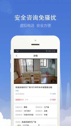 2、安全咨询免骚扰,虚拟电话,安全方便,地图找房体验,定位附近房源,满足您的需求。