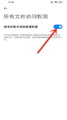 第三步,打开“授予所有文件的管理权限”开关按钮,即可开启本地视频播放权限