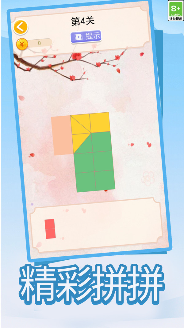 是一种古老的中国传统智力游戏,不同的难度不同的挑战,可拼成许多图形,例如不规则多边形。