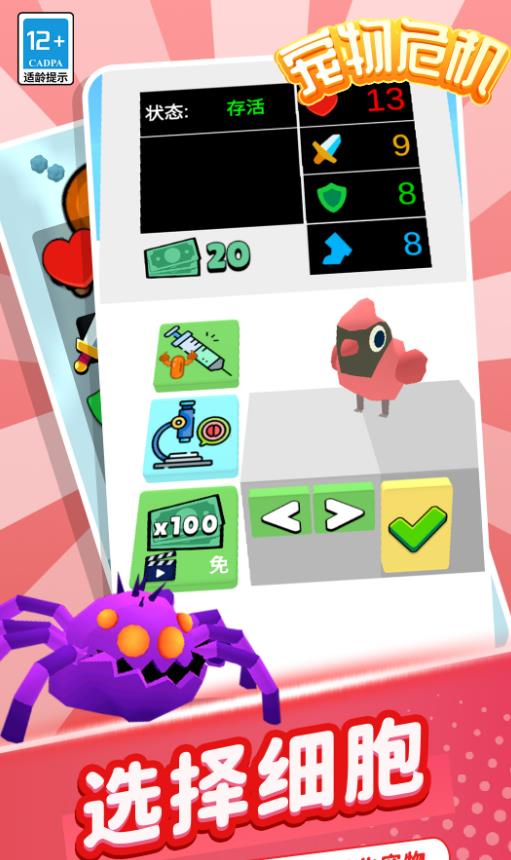 宠物危机游戏拥有极高自由度的趣味冒险玩法设定,在这里你可以一开始就选择自己喜欢的宠物来进行孵化养成,后期可以带上它开启一场紧张的冒险之旅,在不断探索的过程中会出现其他的宠物甚至是细菌,你需要小心谨慎应对,不要让宠物受伤或者生病哦。