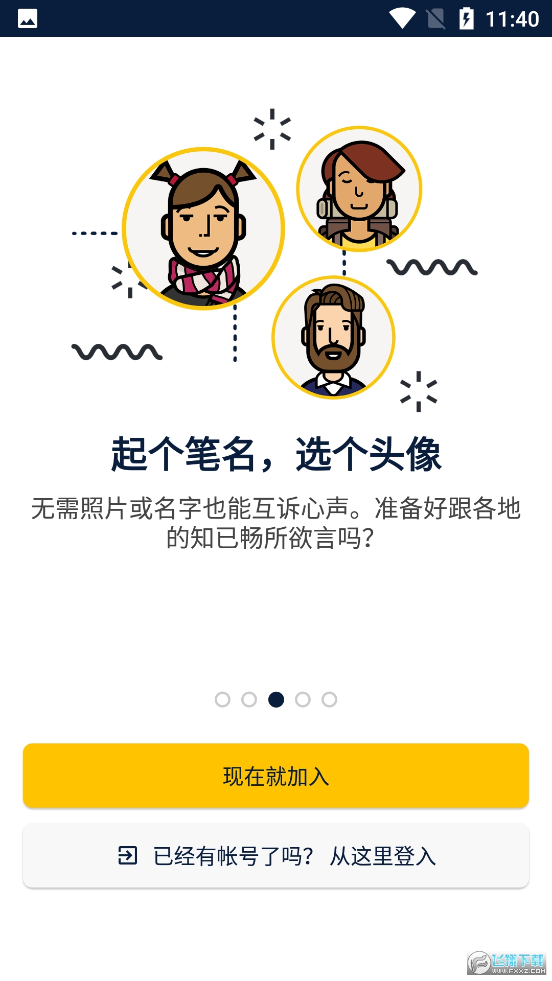 1、随心所欲起个笔名,选好预置头像图片就可以跟世界各国知己各抒己见;