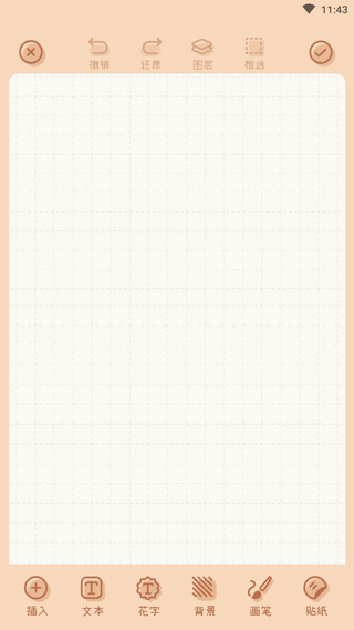 2、选择表情和模板后,新建空白手账;