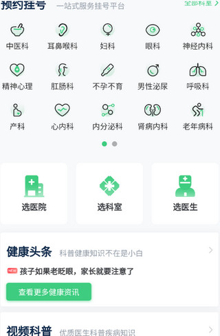 2、首页有预约挂号,选医院选科室选医生