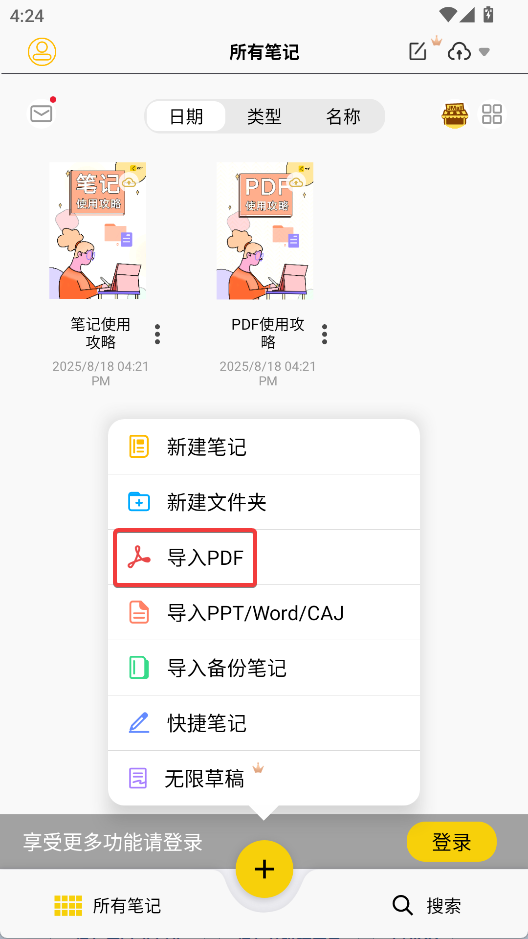 云记怎么导入PDF