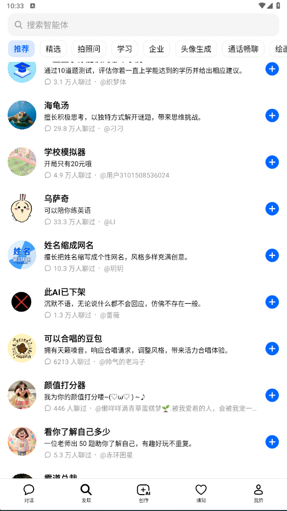 支持用户发现和创建属于自己的 AI 智能体,可根据个人需求定制 AI 功能与交互方式,满足个性化使用需求。