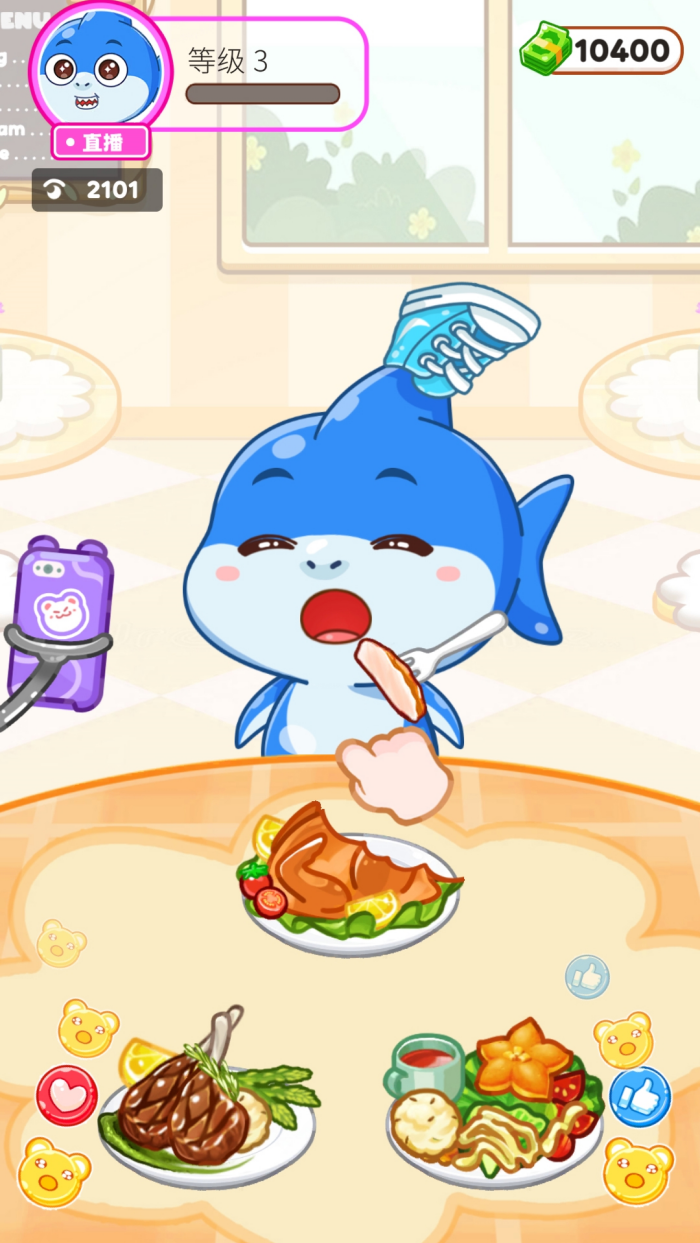 3、收益可用于更换角色造型、解锁美食、升级厨房与直播场景