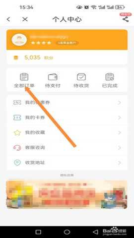 打开中国电信app,在积分商城个人中心点击全部订单。