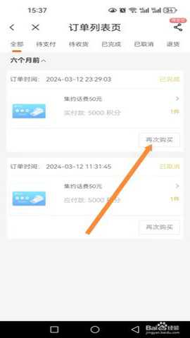 然后在订单列表界面,找到积分兑换话费记录,点击再次购买。