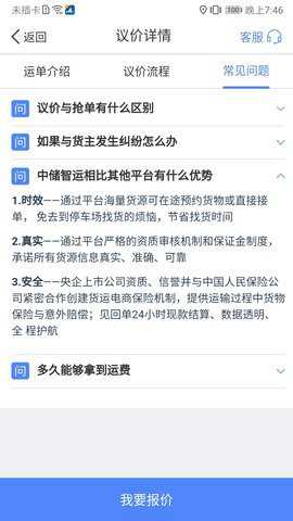2、同时用户还可以实时预测起始地址以及终点位置的距离,浏览到系统统计出来的常见问题和处理办法,发布自己的意向价位即可迅速发布运单报价,实时阅览到相应的运输订单资源,实时查看到账单。