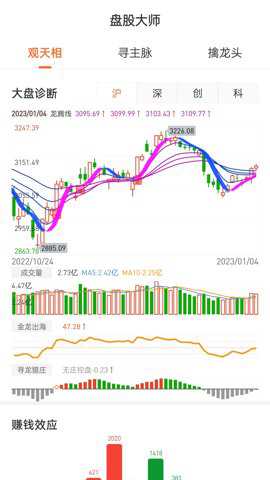 1、该软件提供了多种功能,包括个股估值策略、智能股池、擒龙三式战法、历史回看和相似k线等。
