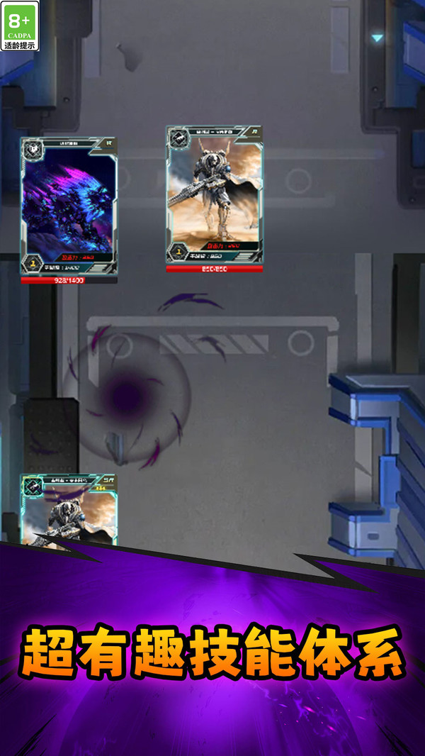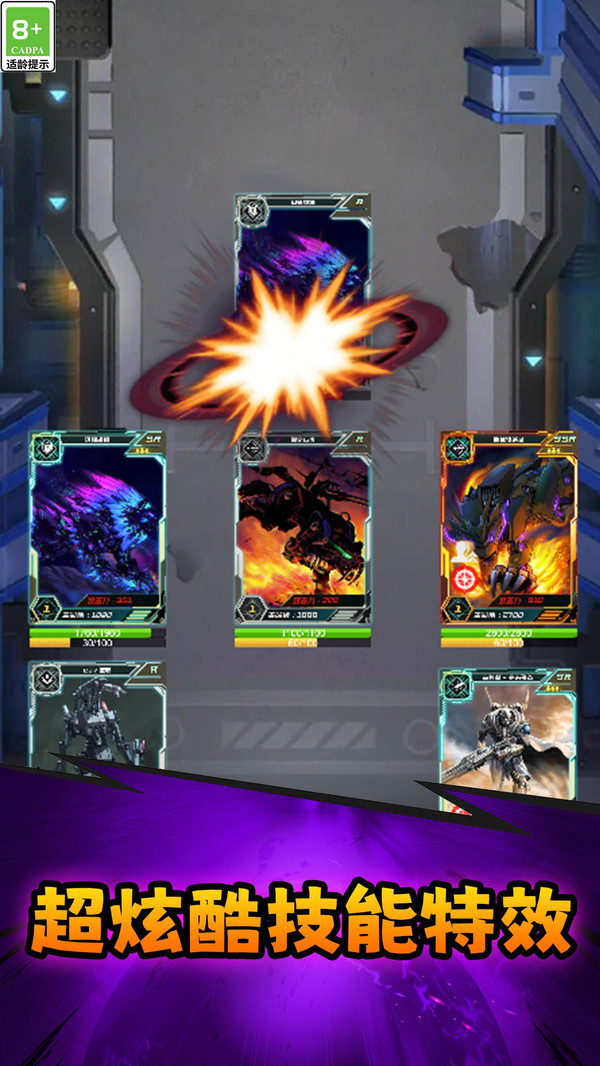 3. 卡牌可通过升级、进化、技能树培养等方式强化,每张异兽拥有独特成长路径,资源分配影响团队整体战力。