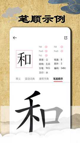 3、康熙字典的查询功能非常简洁,最全解释,笔顺示例,AI智能识字,精准文字显示,让用户可以快速、准确地查询汉字。