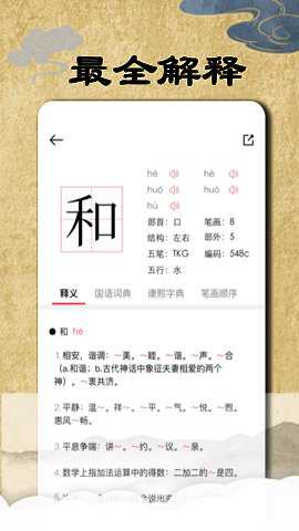 2、此外本软件还提供了详尽的各种字典解释,用户可以轻松查询汉字的含义和用法。