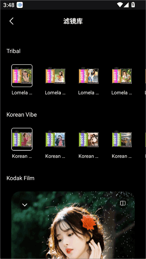 提供不同强度的美颜选项,用户可根据个人喜好自由选择自然或精致的修饰效果,满足多样化自拍需求。2、丰富滤镜库