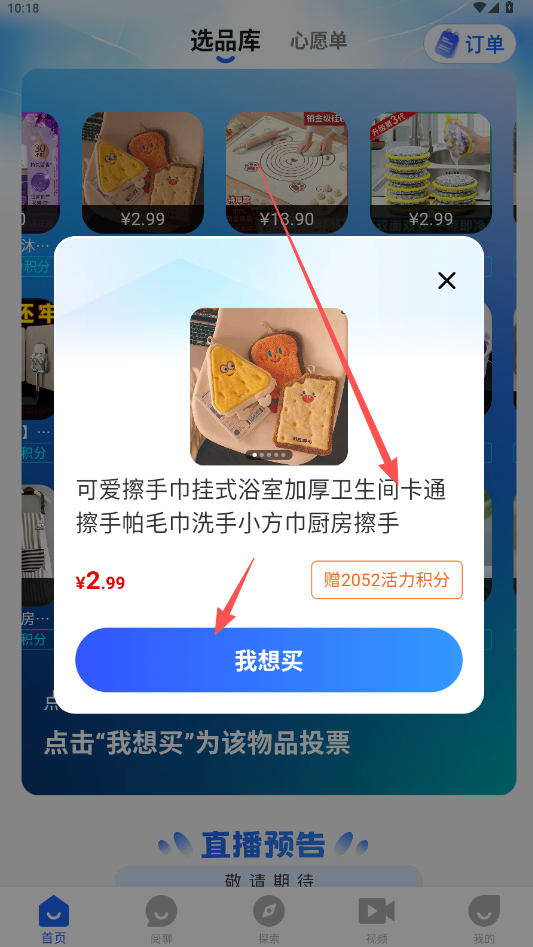 3、注册即登录,来到首页分别查看“选品库”和“心愿单”。
