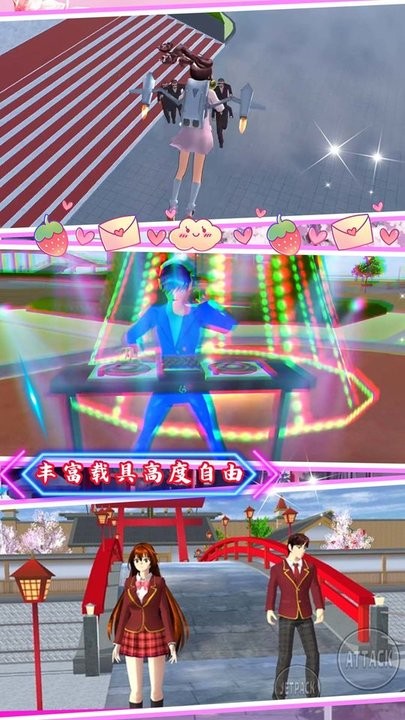 2、该游戏有丰富道具,服装等等,超多NPC与你互动,跟随剧情展开属于你的校园生活吧!