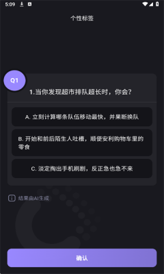 2、通过回答问题,生成个性标签;