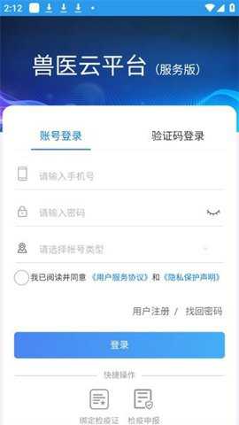 打开兽医云平台官网或APP,使用兽医账号或养殖场备案账号登录(需实名认证权限)。
