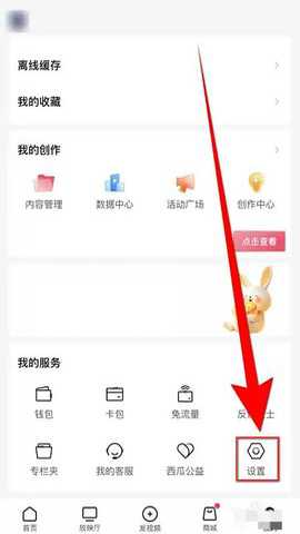 西瓜视频首页点击下方的【我的】打开个人中心界面。