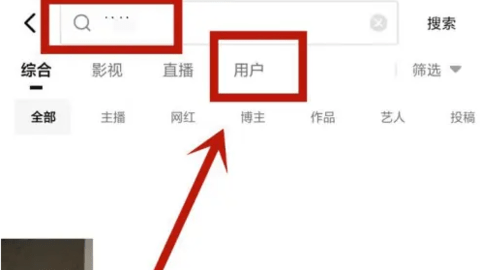 2、输入名字后点击用户选项,在搜索结果里查找目标用户。