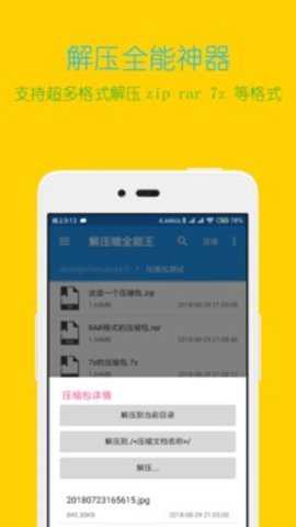 解压缩全能王app是由长沙春觉信息科技有限公司研发的,软件可以解压手机中的压缩的文件,即使身边没有电脑,也能解压缩非常的方便,软件的解压的速度非常的快,可以给用户节省大量的时间,可以支持多种格式的解压,一个软件就能解压所有的文件。