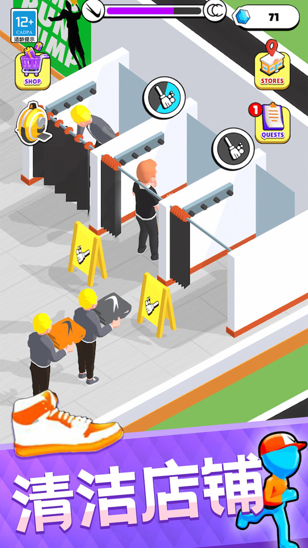 潮鞋达人游戏是款卡通风格的趣味模拟卖鞋子的休闲游戏,玩家在游戏里则是一个小老板,经营着一家属于自己的鞋子专卖店。这里售卖的全都是最时尚潮流的新款鞋子,备受许多顾客的喜爱,由于店里生意非常的火爆,所以你不得不去雇佣更多的店员来帮助自己。