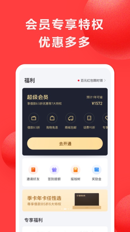 【好分期会员上线】每月1次借款85折优惠,借1笔就能赚回会员费,还有话费充值购物包邮减免多重权益!
