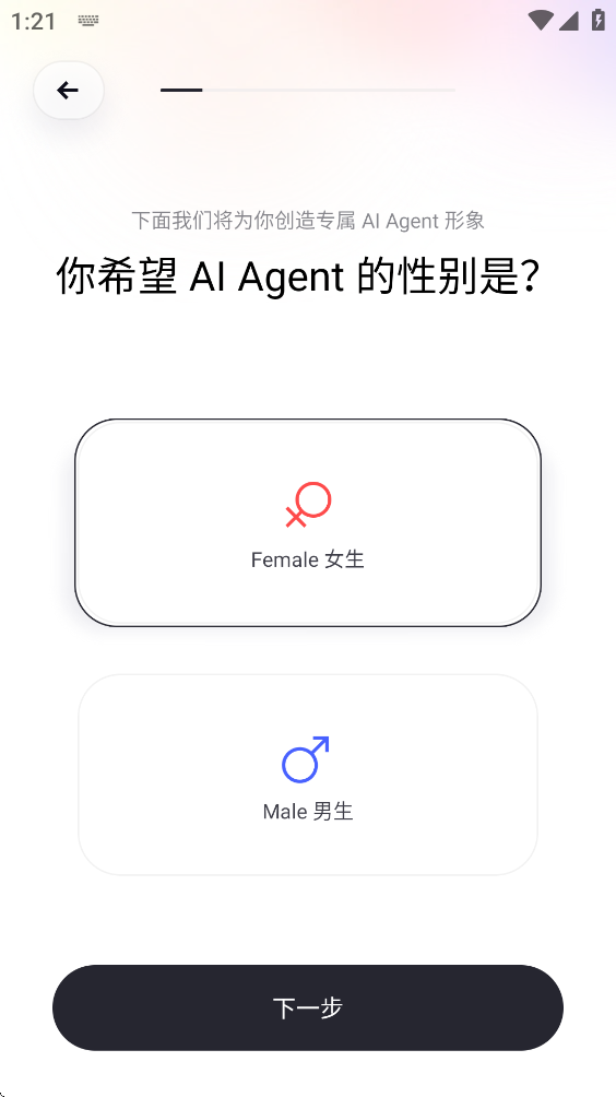 3、选择AI角色的性别。