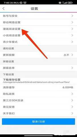 第二步:在设置页面,点击【漫画阅读设置】进入,如图所示。