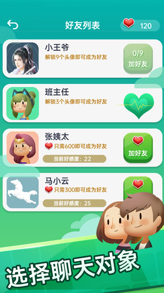 游戏就像真实的社交软件一样,你可以随机遇到不同的朋友,只需点击选择就能完成对话互动。