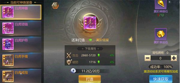 通过消耗神铸石进行提升装备的额外属性
