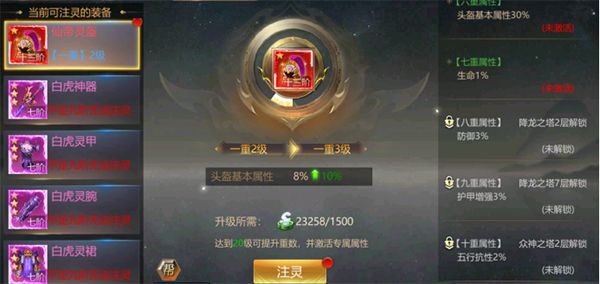 玩家可以通过诸神塔解锁装备中的额外属性,加强装备