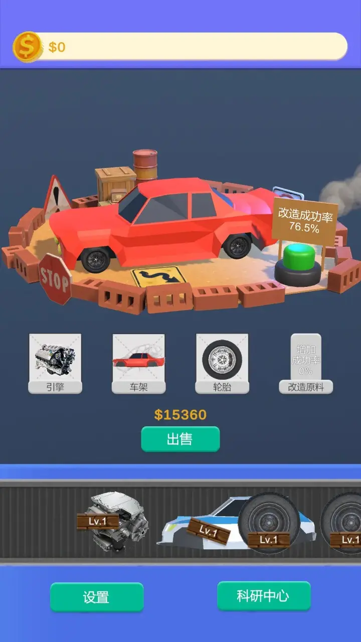 二手车贩游戏是一款简单有趣的汽车组装游戏,玩家只需要收集齐三个零件,就能成功拼装出一辆完整的汽车,每装好一辆车,就可以出售换取丰厚报酬。轻松的操作,爽快的收益,让你享受从零件收集,到成功售出的完整乐趣!