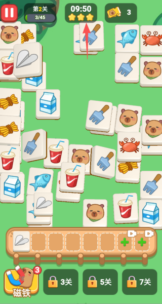 4、区别于常规三消游戏主打治愈系风格与水豚元素,玩家在消除过程中无需焦虑,只需享受萌豚带来的轻松时光。
