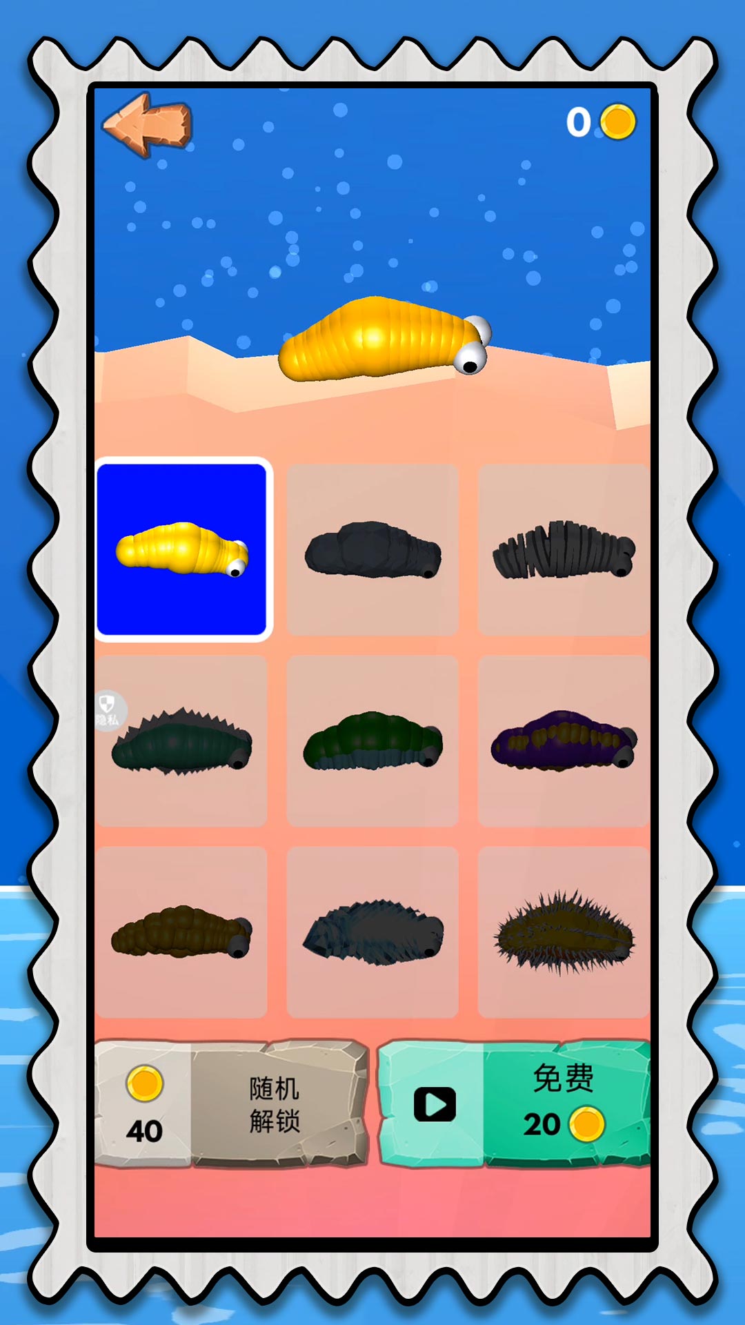 深海生存模拟手游是一款简约的深海模拟生存冒险游戏,操控各种深海的鱼类不断的生存,玩法也是非常有趣简单的,在不同的地形中控制小虫子去不断攀爬,利用操作方式不要让它们掉下去。要时刻的感受到周围的危险气氛,不断的提高警觉性,安全的把所有的关卡都闯过去,解锁更多有趣又刺激的玩法。