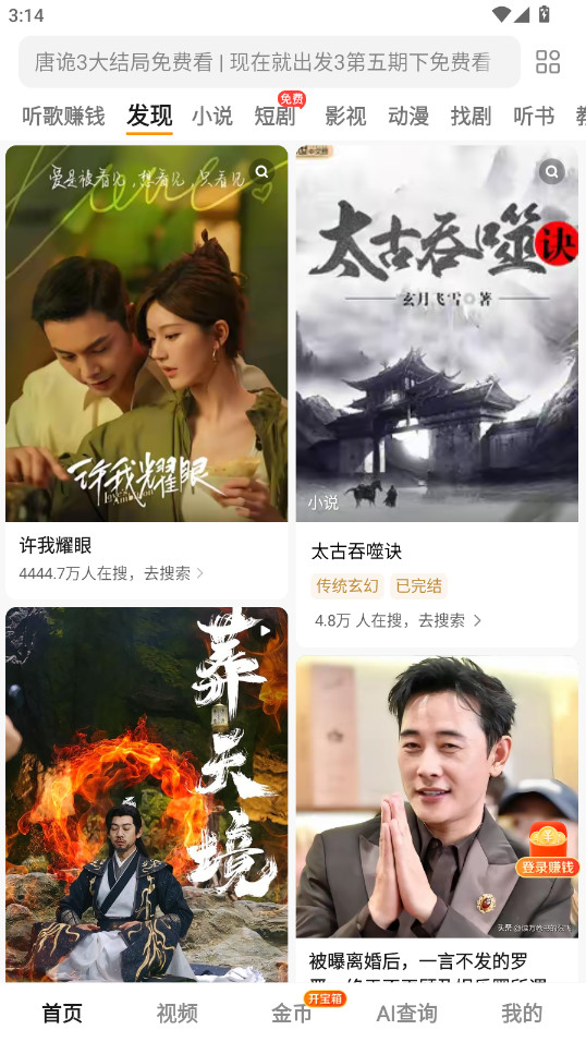 1、打开app,在首页你可以搜索自己想要查找的信息;