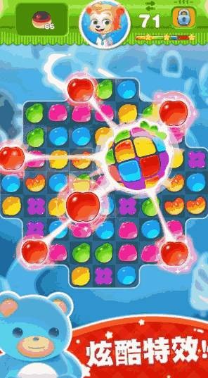糖果世界传奇手游:一打开就像掉进糖果蜜罐里,满屏都是亮晶晶的水果糖,馋得人想舔屏幕,玩法超好上手,手指划拉几下就行,关卡里还有各种机关,每过一关都有惊喜奖励,特效跟放烟花似的,再配上欢快音效,压力全飞走。