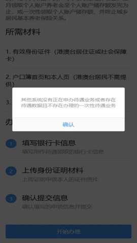 阅读办事指南,点击【开始办理】按钮,弹窗提示外部数据比对结果,点击【确定】按钮