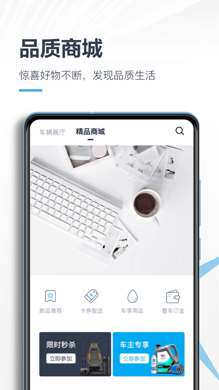好物商城丨自助看车、在线购车更透明,支持多种积分玩法,秒杀限时购、好物0元兑,让看车、试驾、购车、用车更加轻松有趣。