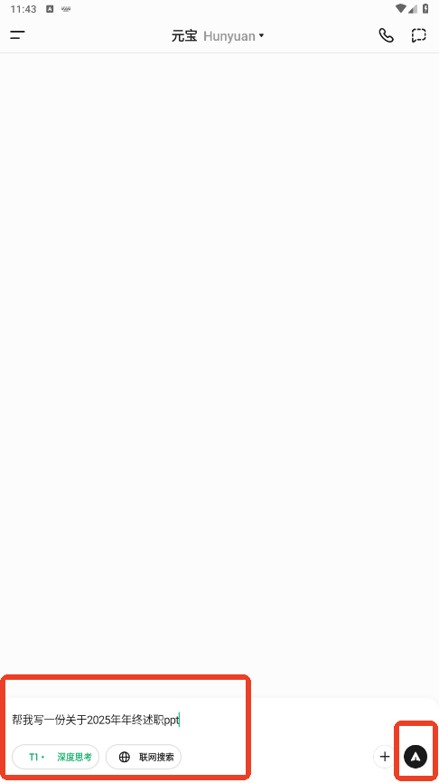 1.在软件首页对话框输入你的生成ppt指令。点击发送。