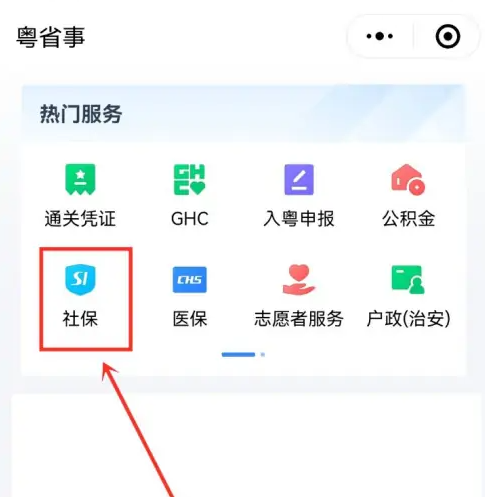 打开粤省事,点击社保。