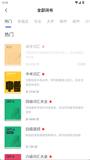 2、 海量词库:涵盖小学、初中、高中、四六级、考研、托福、雅思等各阶段词汇,满足不同学习需求。