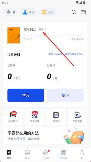 1、在“单词”界面点击词汇书名称旁边的“修改”