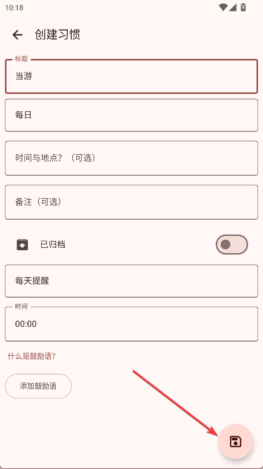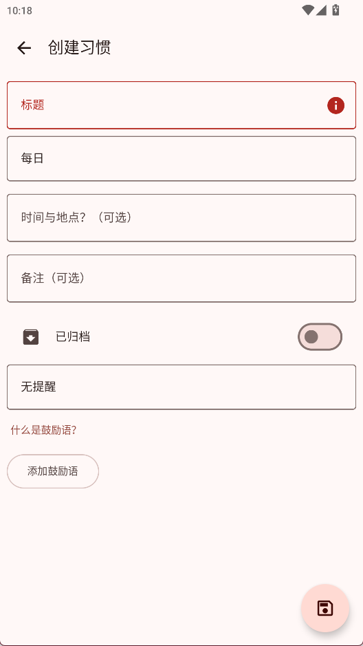 4、 自定义鼓励语:用户可以为每个习惯设置个性化的鼓励信息,在完成时获得正向激励。