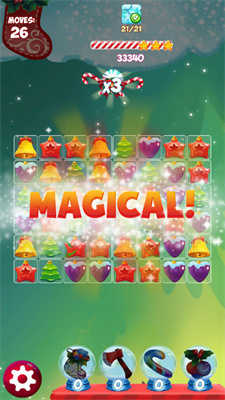 圣诞益智比赛游戏是一款趣味性十足的休闲益智游戏,游戏以消除玩法为主,在这满满的圣诞元素中进行游戏,玩家的心情也会变得更加的愉悦。该游戏有着超多的道具可供玩家选择,不过外力的帮助始终还是不如靠自己去进行闯关,所以玩家还是需要多多锻炼自己的反应能力和洞察力,这样才能在消除游戏的世界里一往无前。