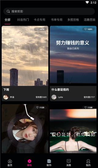 1、 海量模板资源:提供亲情、友情、爱情、萌宠、爱豆、复古、文艺、淘宝微商、嘻哈、街舞等多种主题的视频模板,用户可一键套用。