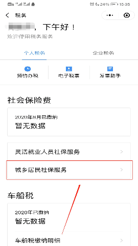3.在跳转页面中点击登录后,即可查看可办理的税务种类,在此页面中点击“城乡居民社保服务”;