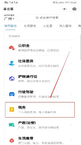 2.进入小程序后,在小程序主页中向下拉,点击常用服务中的“税务”;