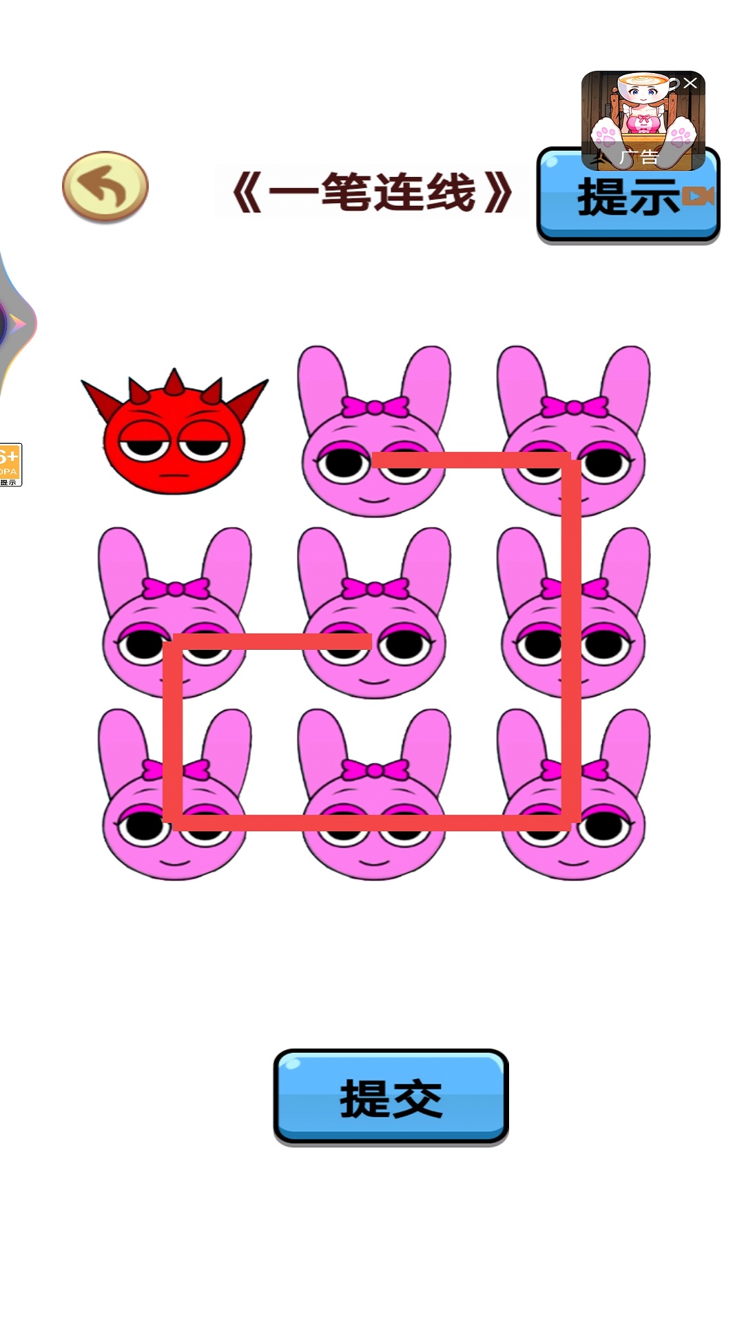 1、玩家需用一条连续的线将所有大萝卜图案完全包围,形成闭合区域,若路径未闭合或遗漏萝卜,则挑战失败;