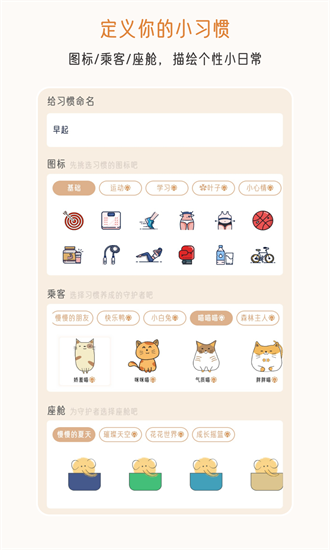 3、小日常图标:可为每个打卡任务添加对应的专属图样,区分更清晰、更具趣味性。